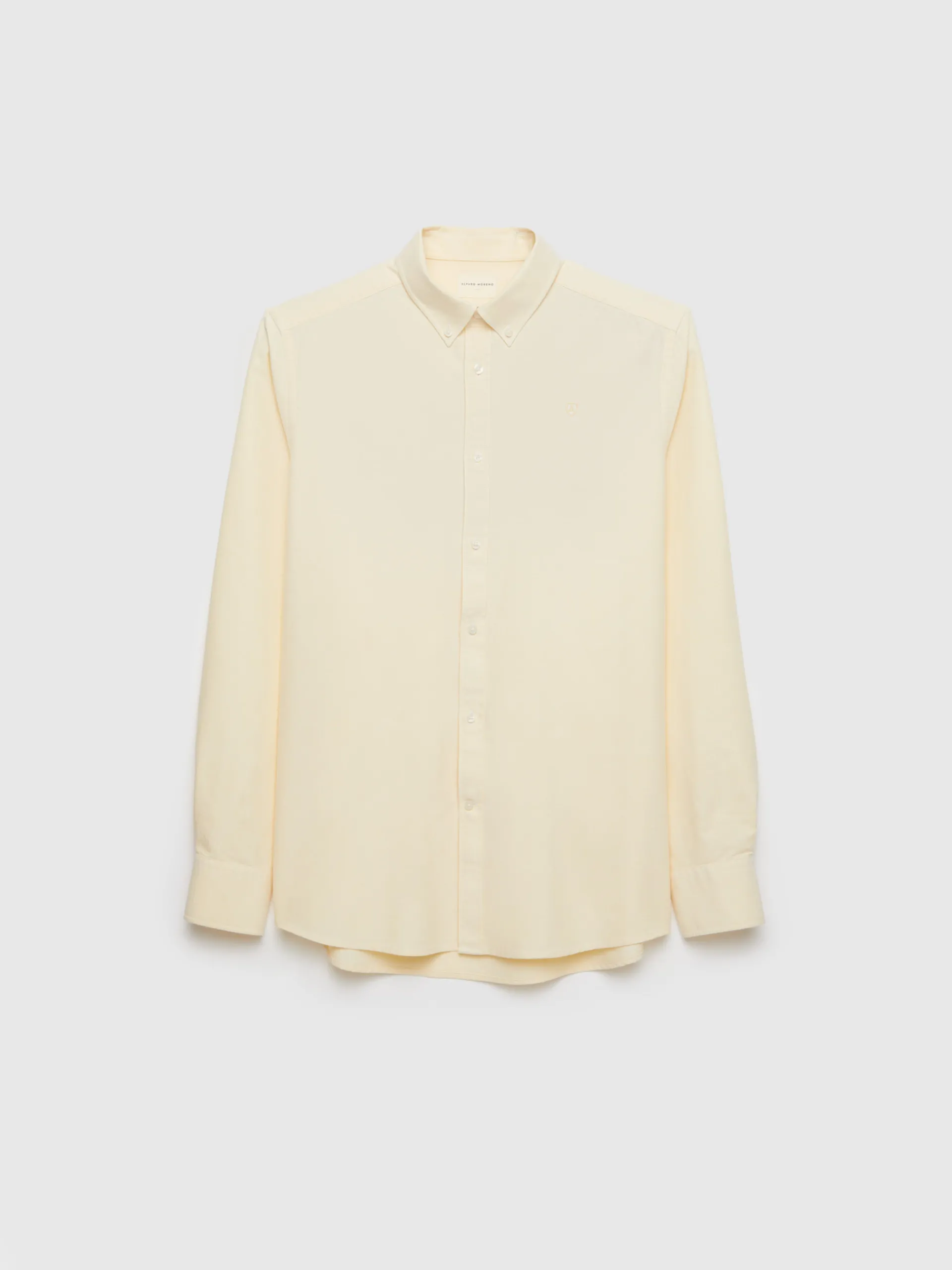 Camisa confeccionada en algodón con cuello clásico de botón, logo grabado en el frontal al tono y manga larga de puños simples. Corte regular fit.