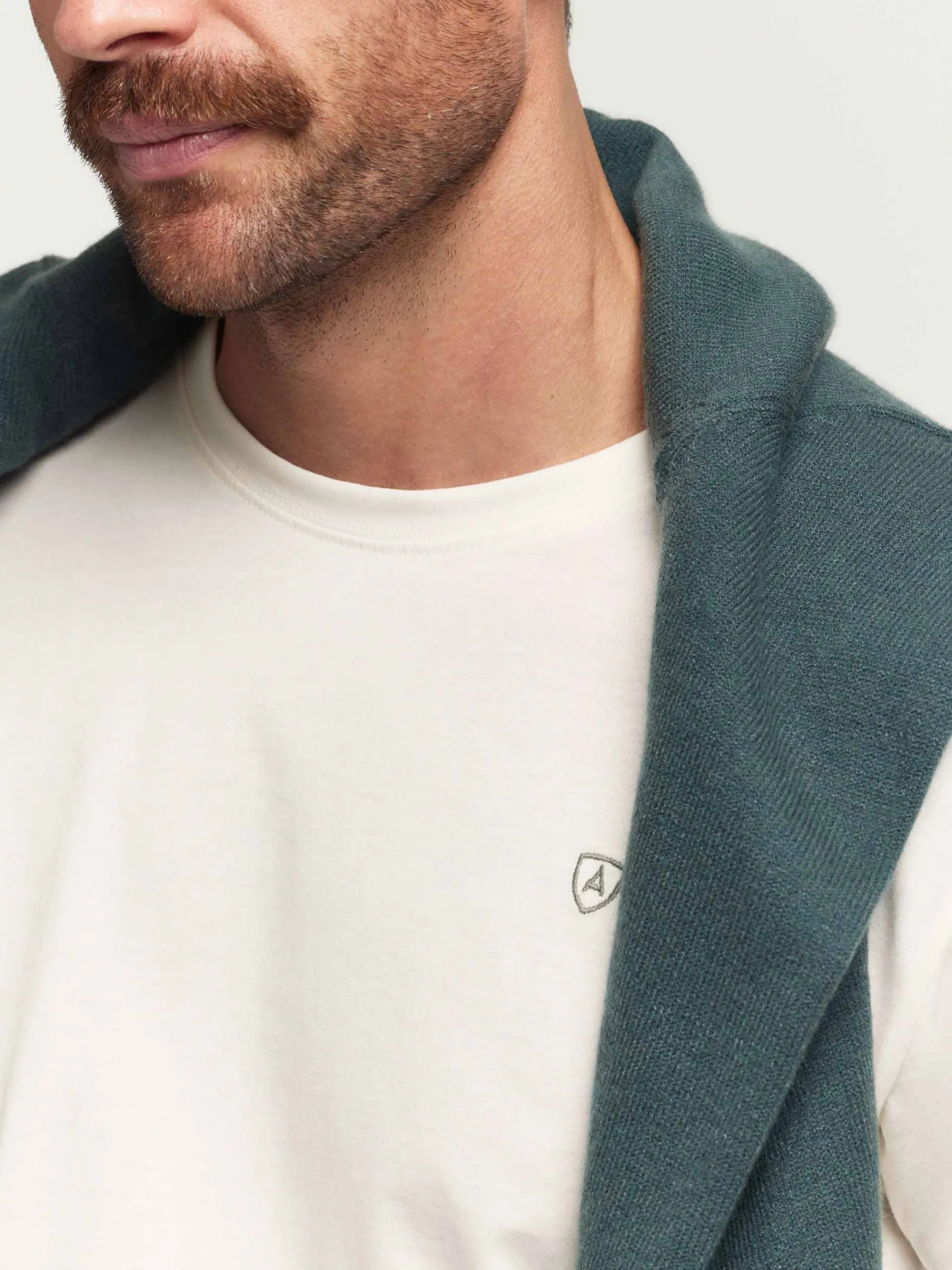 Camiseta con estampado personalizado en el frontal y en la parte trasera. Cuenta con cuello redondo, manga corta y corte regular fit.