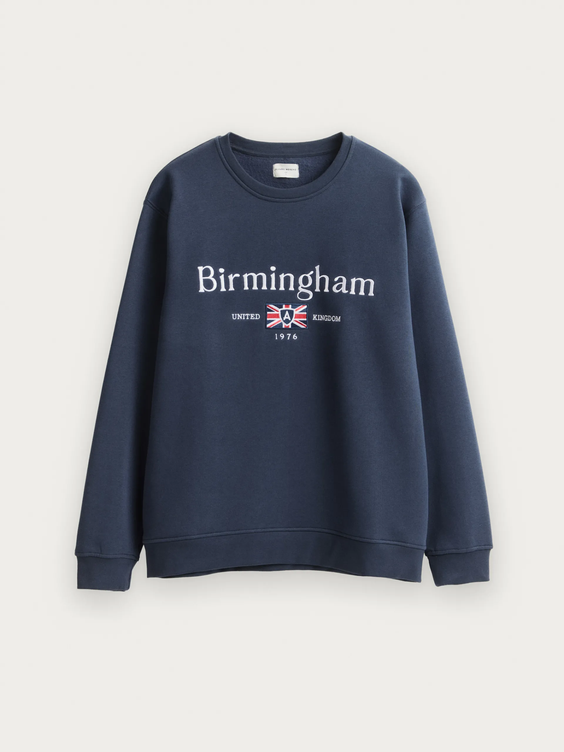 Sudadera confeccionada en algodón con cuello redondo, manga larga y estampación personalizada en el frontal. Etiqueta canvas en el lateral. Corte regular fit.
