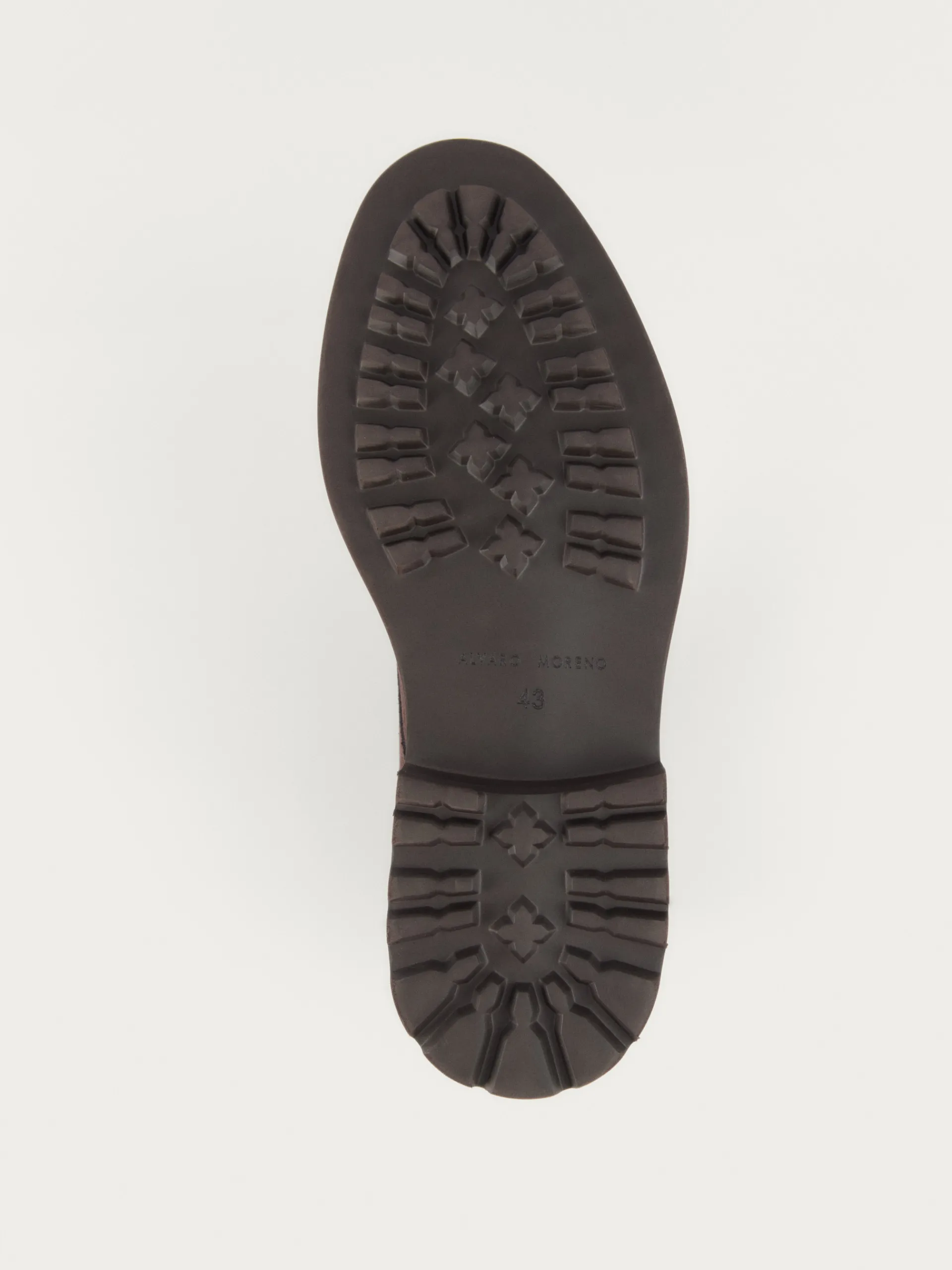 Botín confeccionado en serraje con cordones al tono de hasta tres pasados, suela con laminas antideslizantes y talón r…