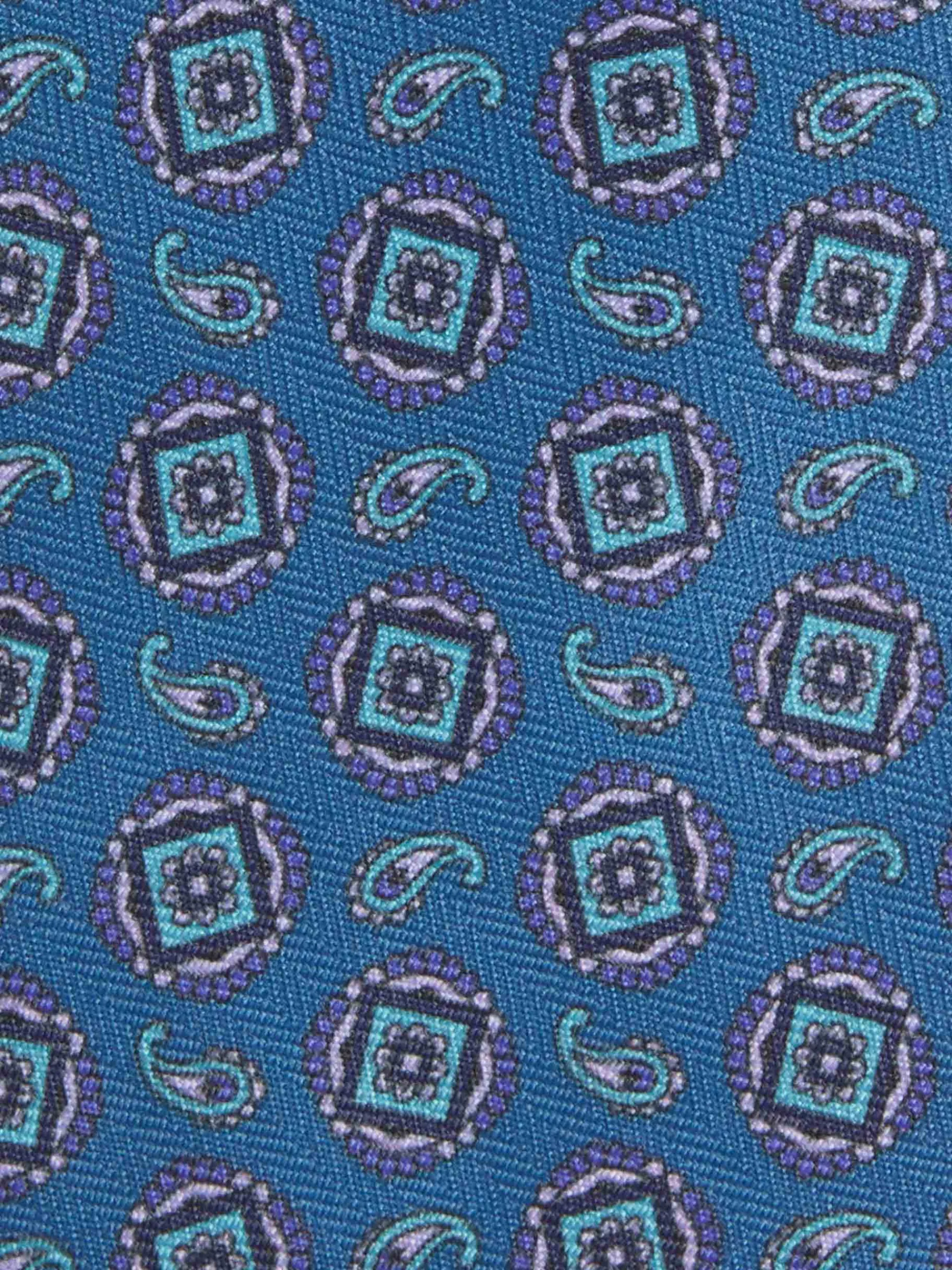 Corbata con diseño estampado personalizado confeccionada en 100% poliéster. Cuenta con el logo de la marca grabado en el interior.
