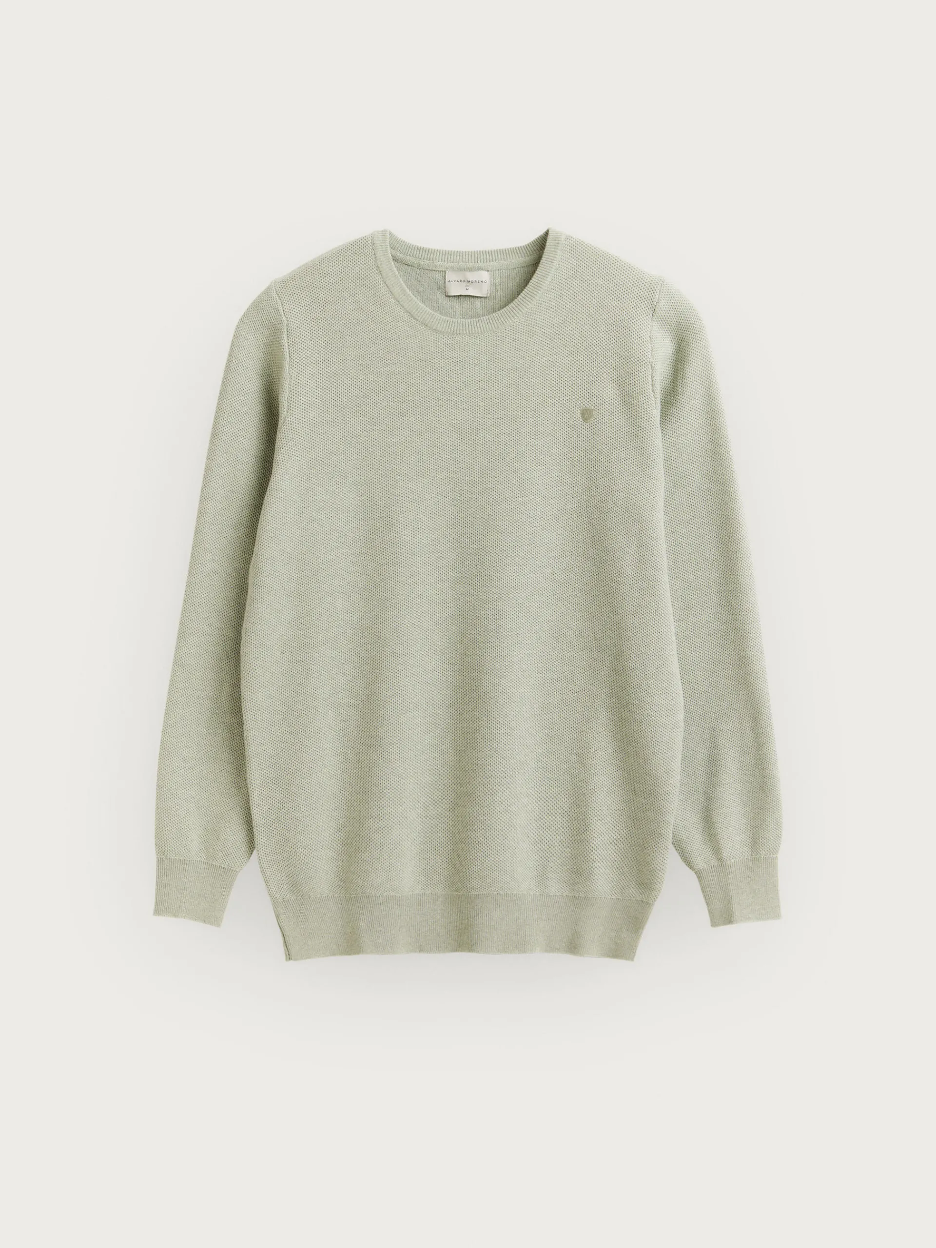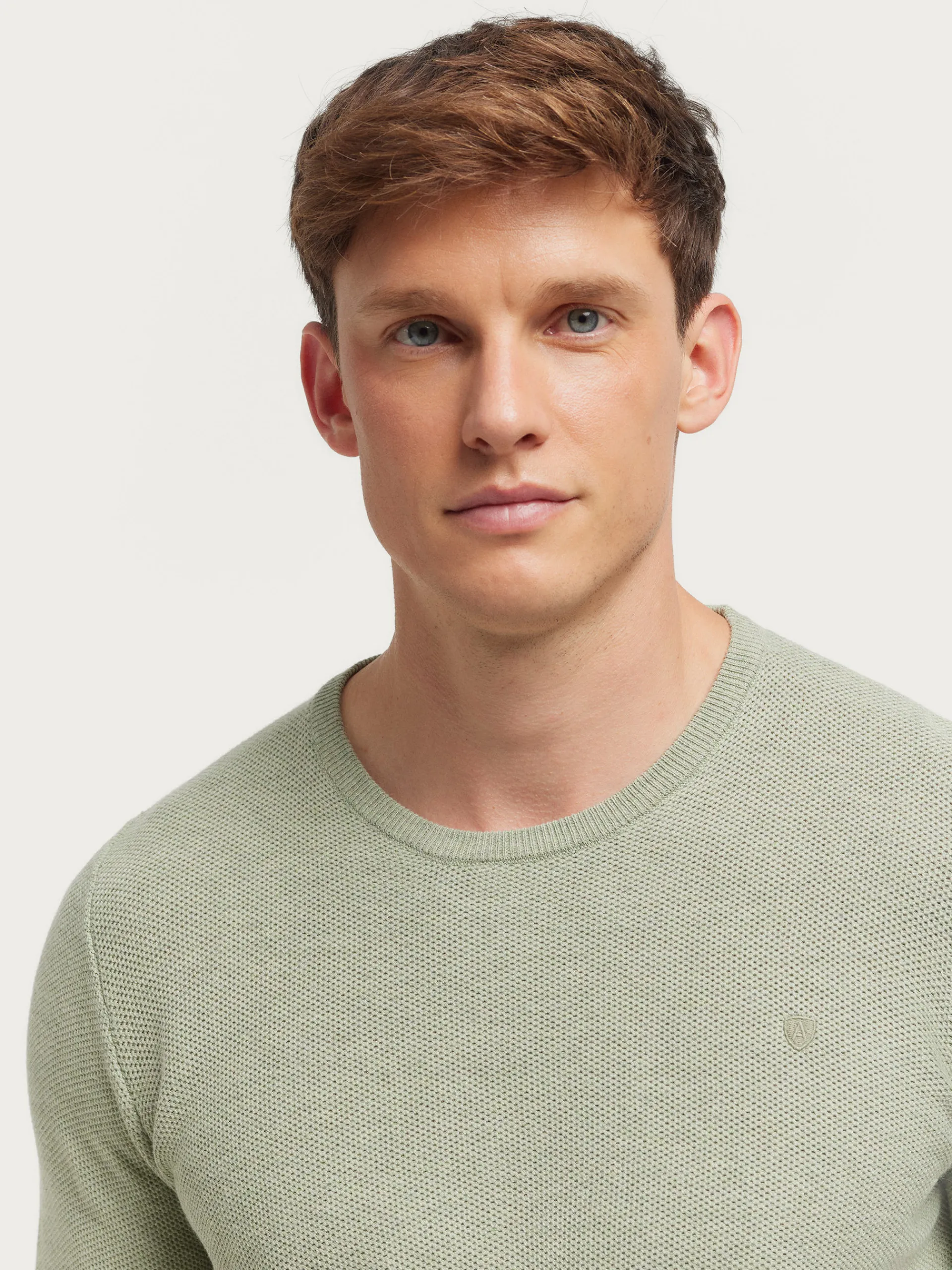 Jersey con tejido de estructura, cuello a la caja y logo de la marca bordado en el frontal al tono. Bajo, puños y cuello en acabado ribeteado de punto elástico para mayor comodidad. Corte regular fit.