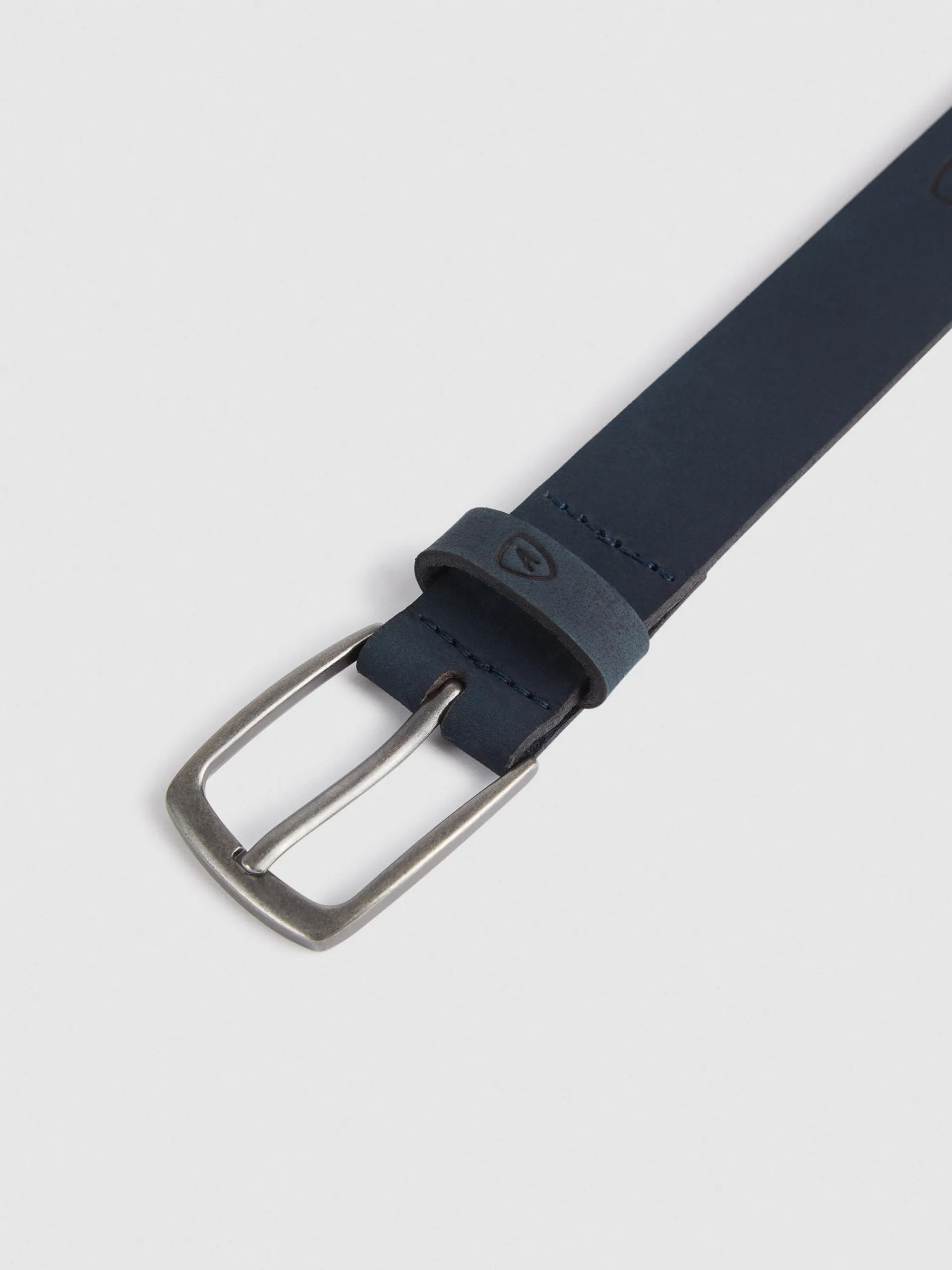 Cinturón con cierre central mediante hebilla metálica, pasador al tono y logo de la marca grabado al tono.