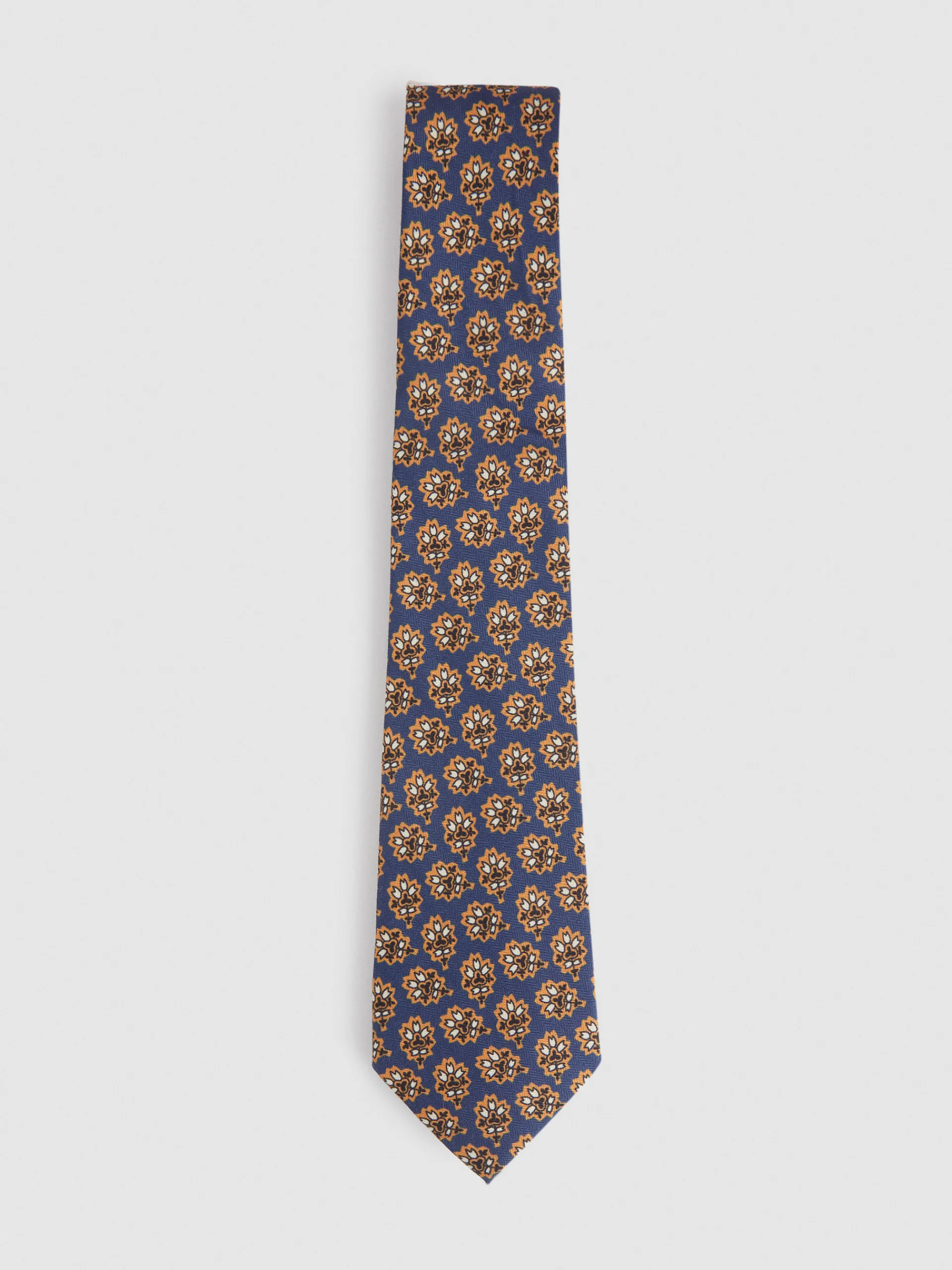 Corbata con diseño estampado personalizado confeccionada en 100% poliéster. Cuenta con el logo de la marca grabado en el interior.