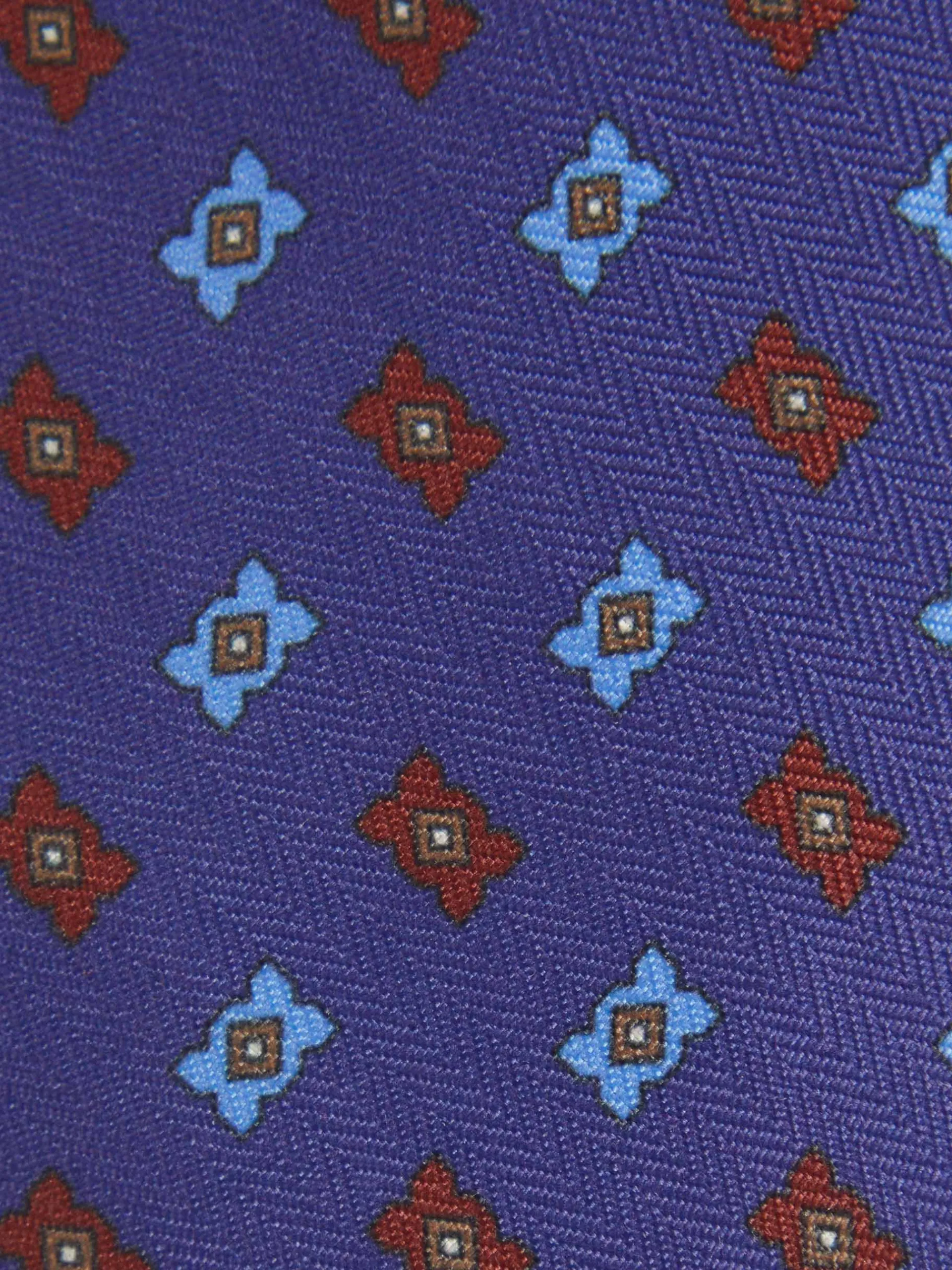 Corbata con diseño estampado personalizado confeccionada en 100% poliéster. Cuenta con el logo de la marca grabado en el interior.