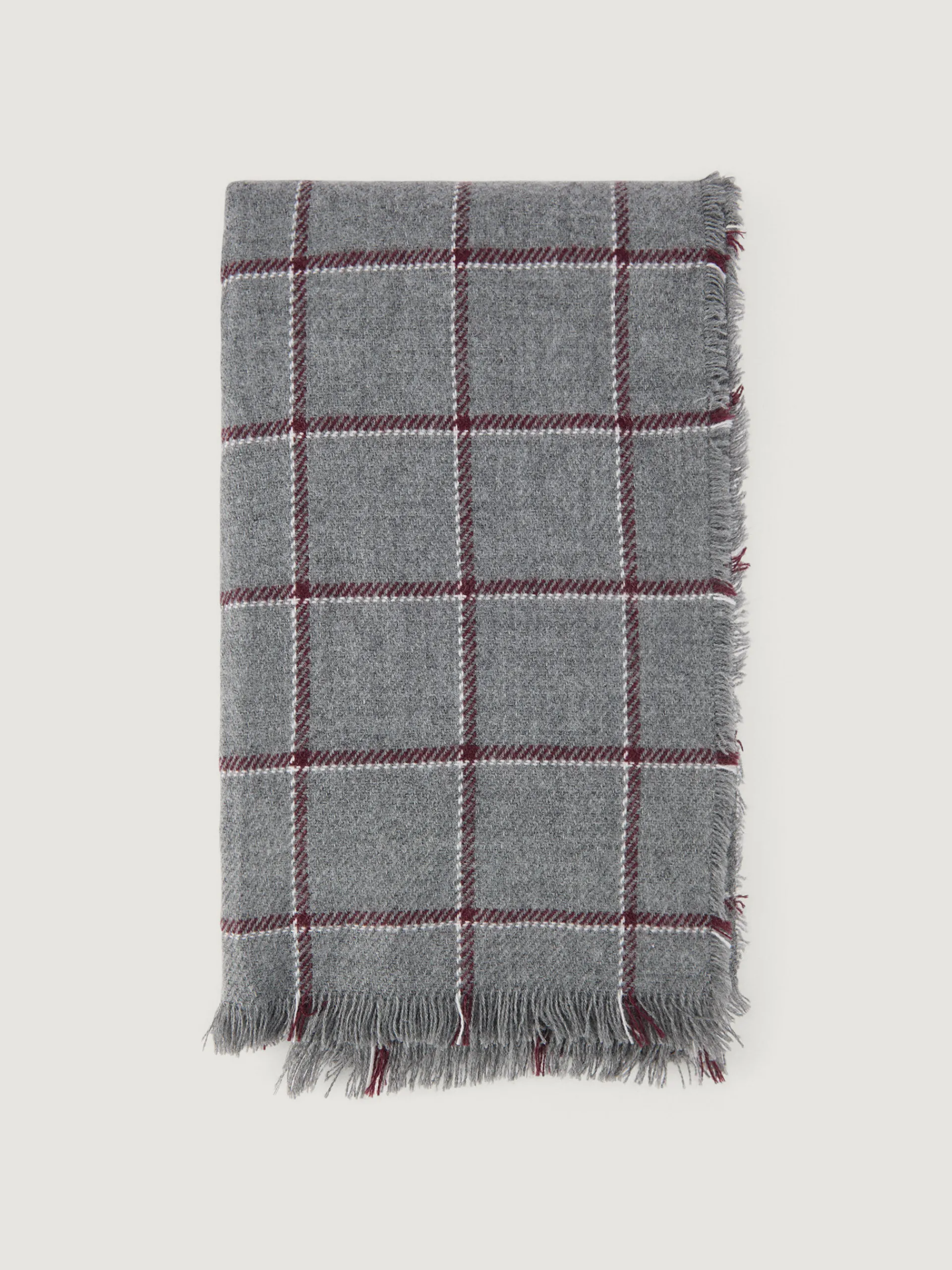 Bufandas con diseño de cuadros confeccionada en 100% acrílico. Terminación de flecos decorativos y tacto suave.