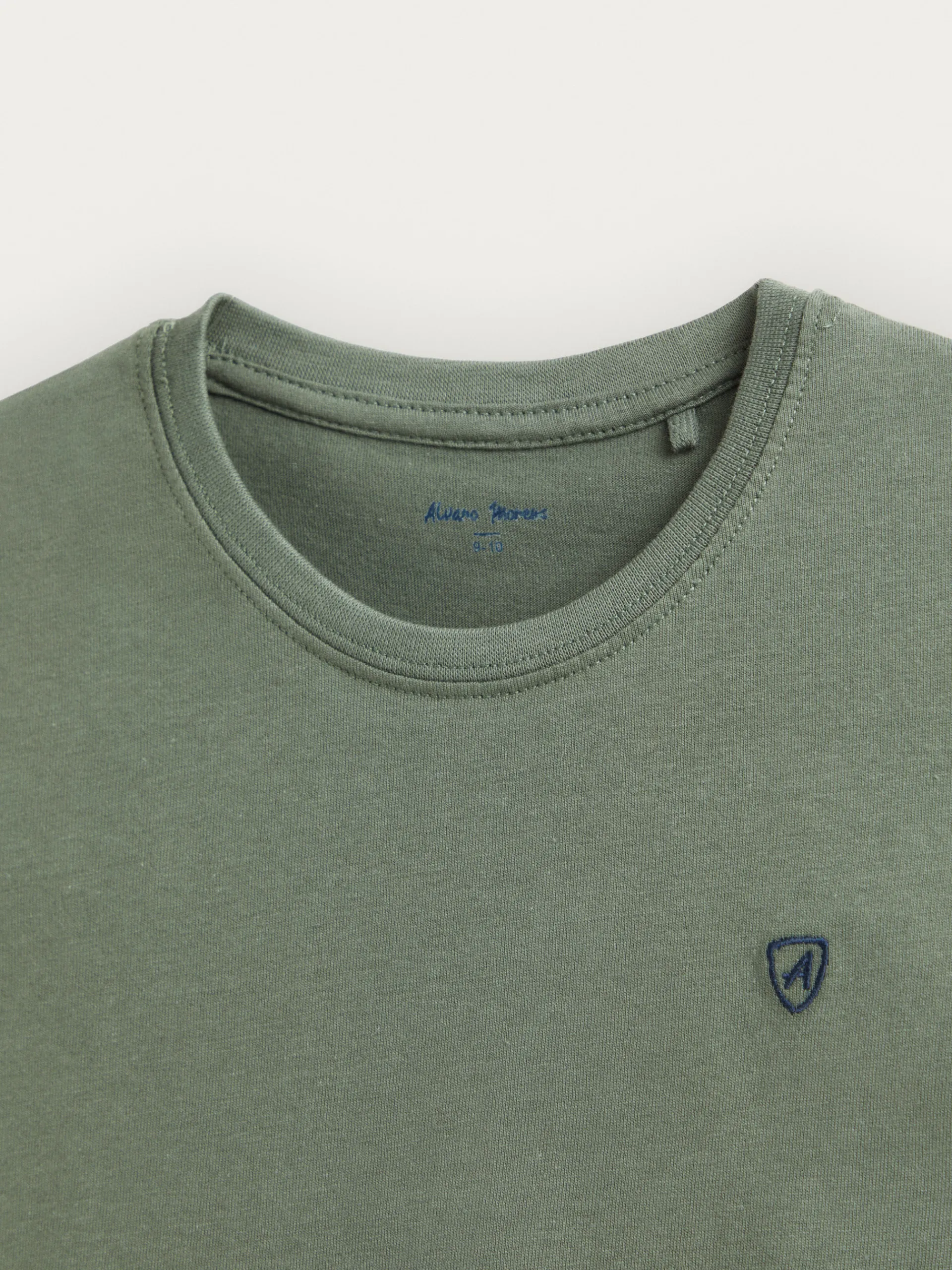 Camiseta lisa confeccionada en algodón con cuello redondo, manga corta y logo de la marca grabado en el frontal. Etiqueta canvas en el lateral. Corte regular fit.