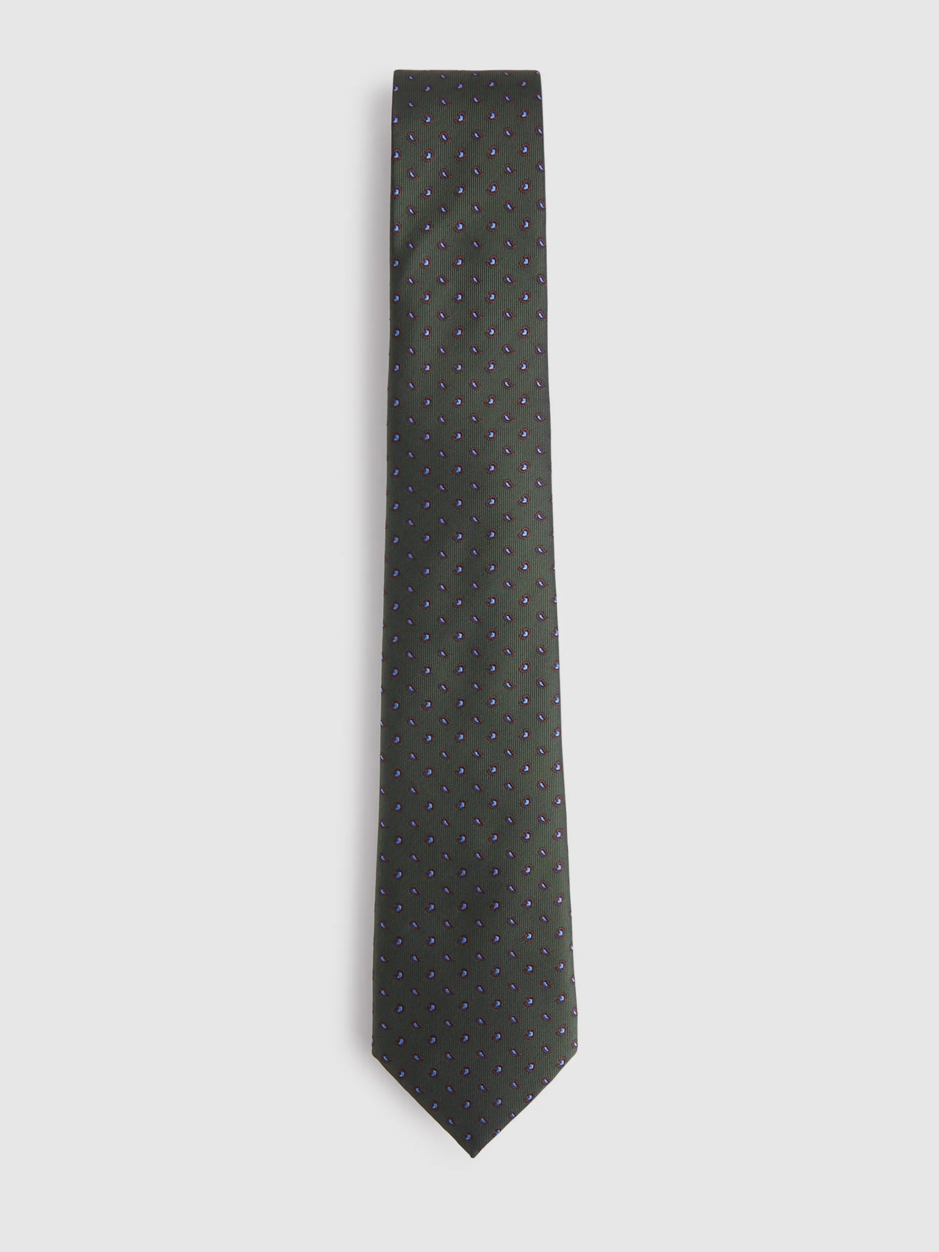 Corbata estilo jacquard con diseño estampado a contraste confeccionada en 100% poliéster. Cuenta con el logo de la marca grabado en el interior.