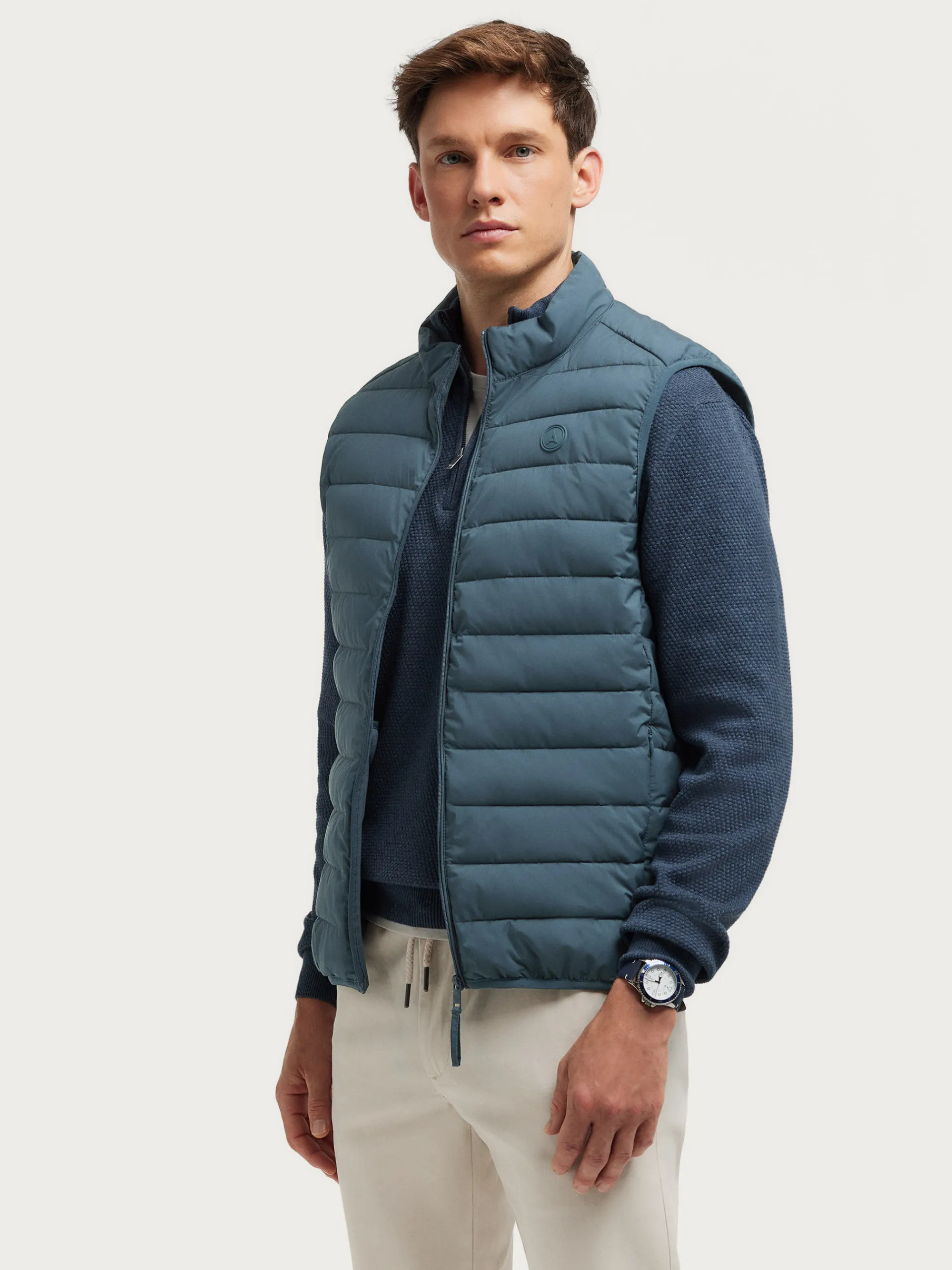 Chaleco con cierre central mediante cremallera y dos bolsillos en la cintura. Cuenta con cuello subido, logo grabado en el frontal y sisa y cintura en punto elástico. Corte regular fit.