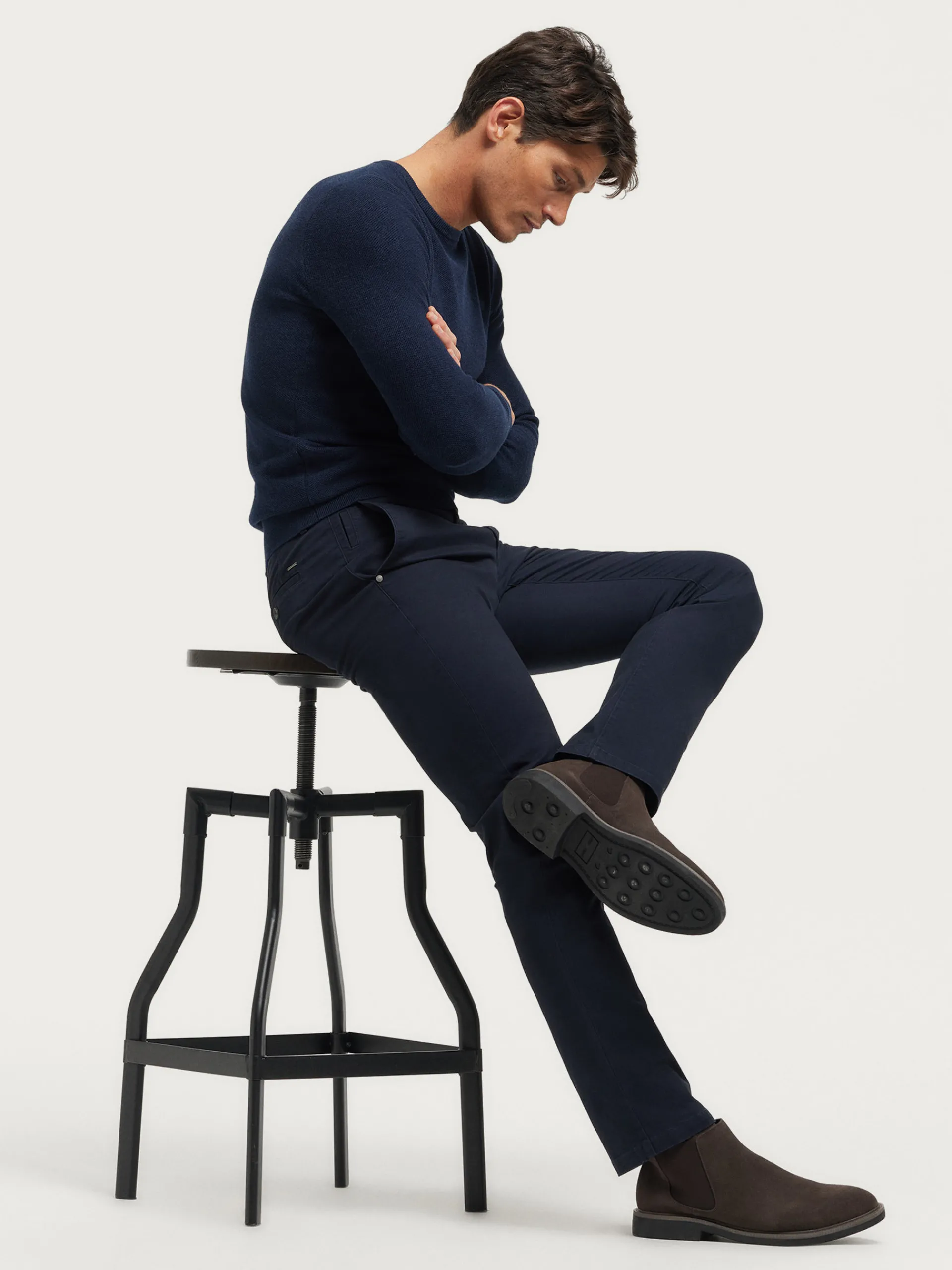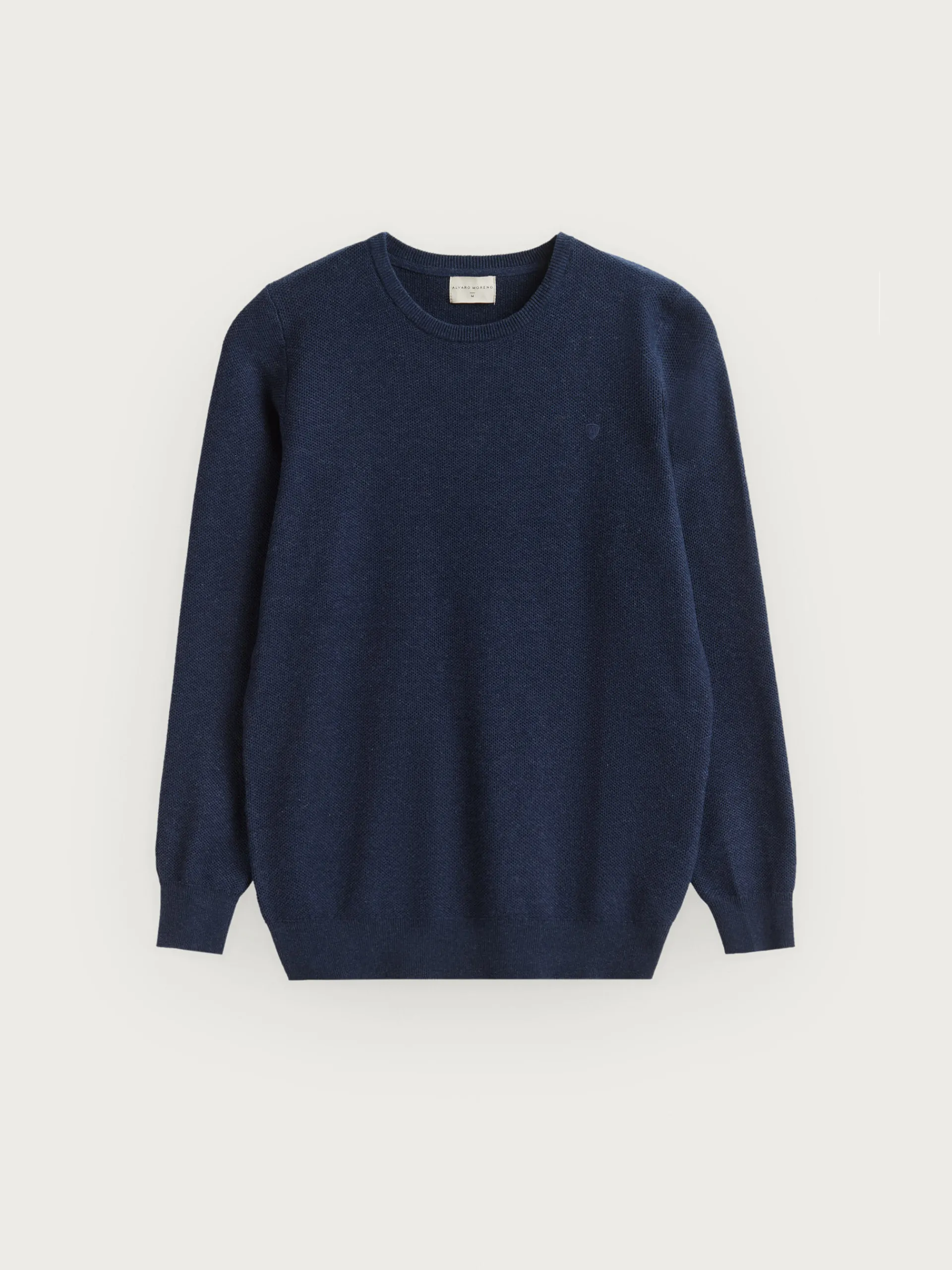 Jersey con tejido de estructura, cuello a la caja y logo de la marca bordado en el frontal al tono. Bajo, puños y cuello en acabado ribeteado de punto elástico para mayor comodidad. Corte regular fit.