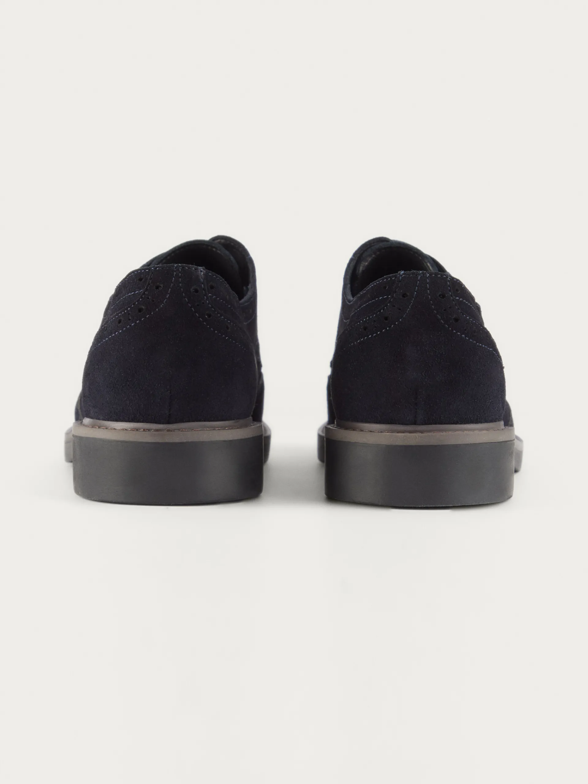 Zapatos confeccionados en serraje con detalles picados. Cuenta con cordones de hasta cuatro pasados, suela de goma antideslizante y punta redondeada.