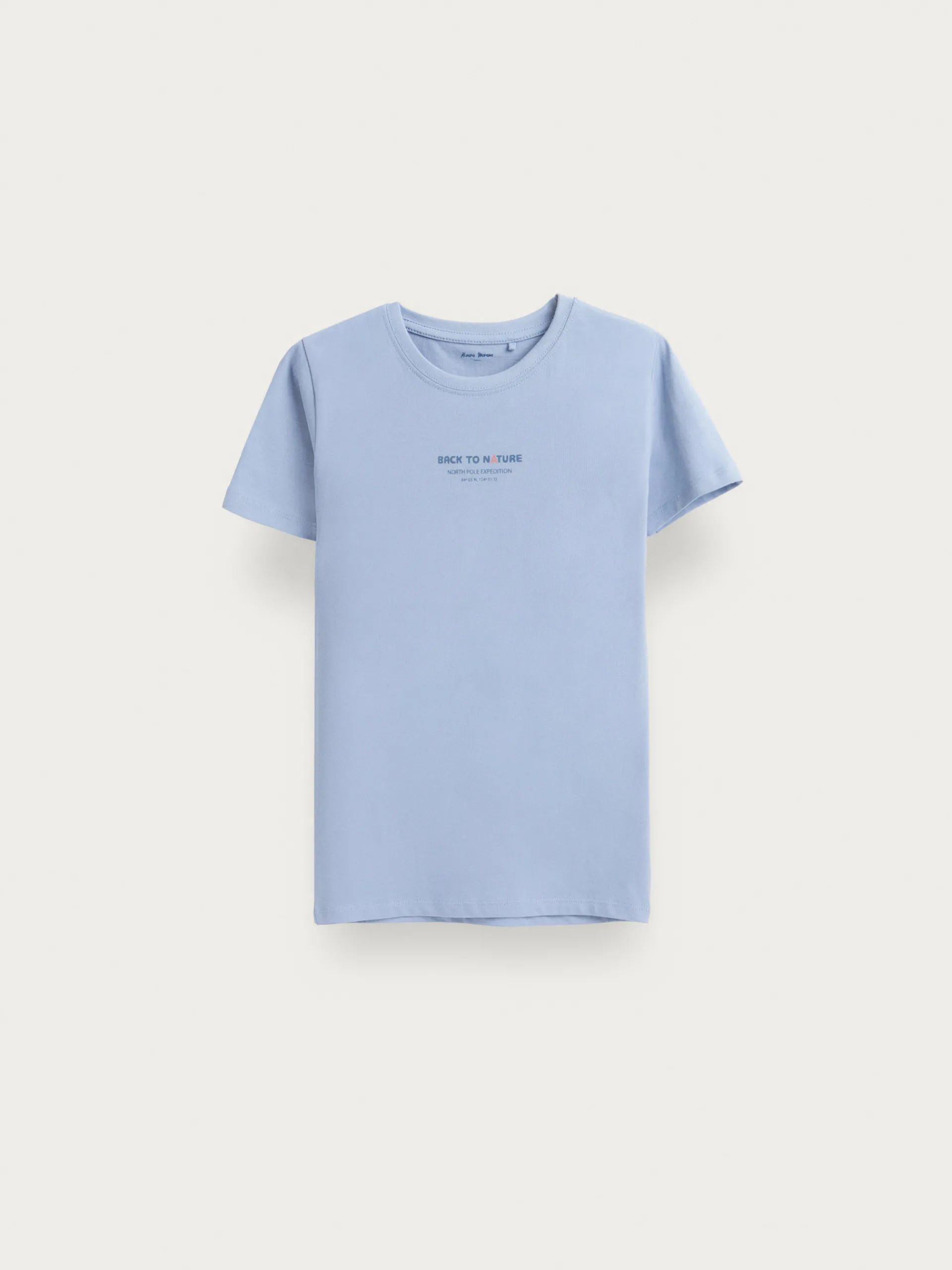 Camiseta con estampado personalizado en la parte delantera y trasera. Cuenta con cuello redondo y manga corta. Corte regular fit.