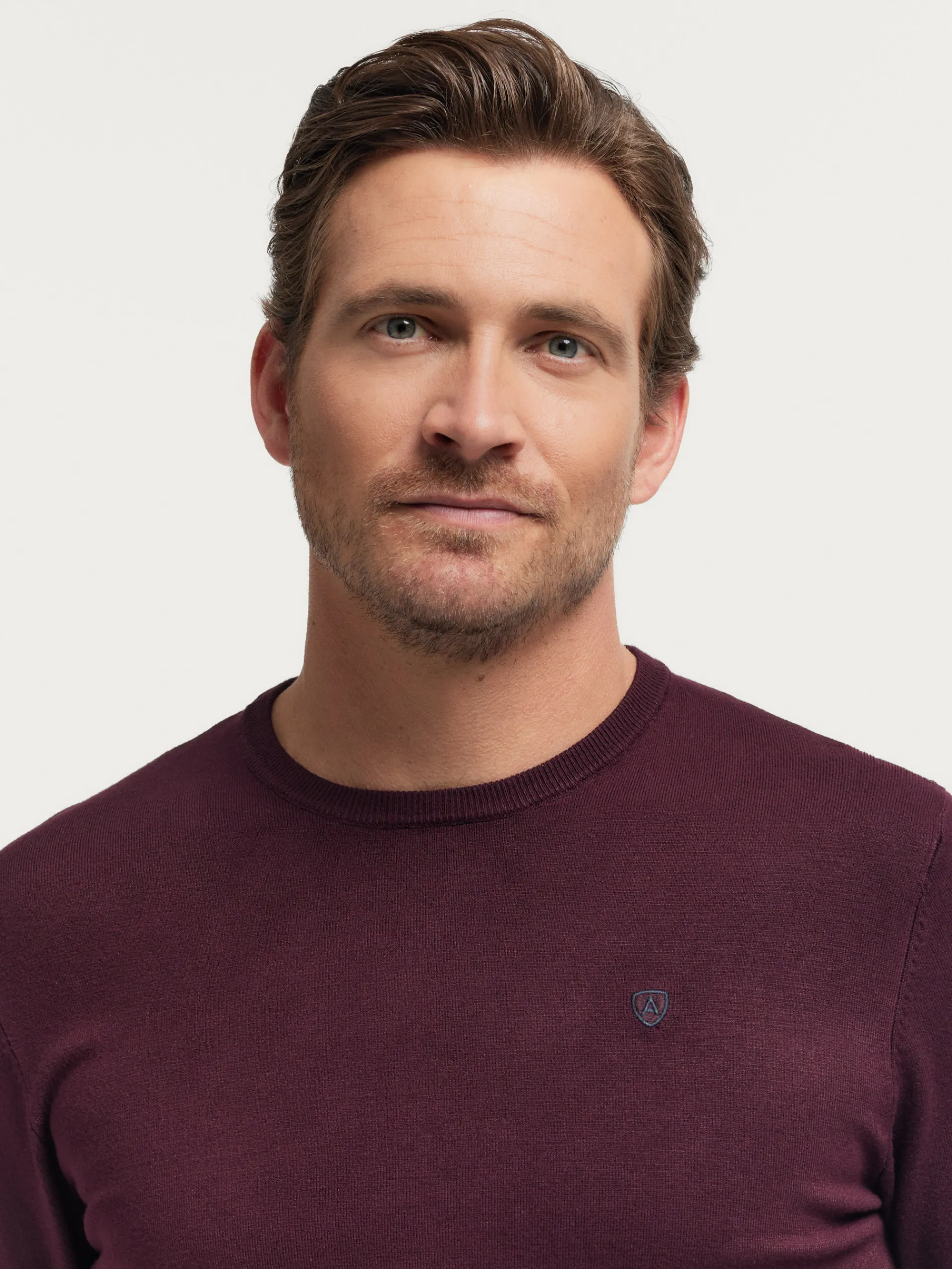 Jersey liso de fina estructura confeccionado en algodón. Cuenta con cuello redondo, manga larga y detalle grabado en el frontal. Cuello, bajo y puños en acabado ribeteado. Corte regular fit.
