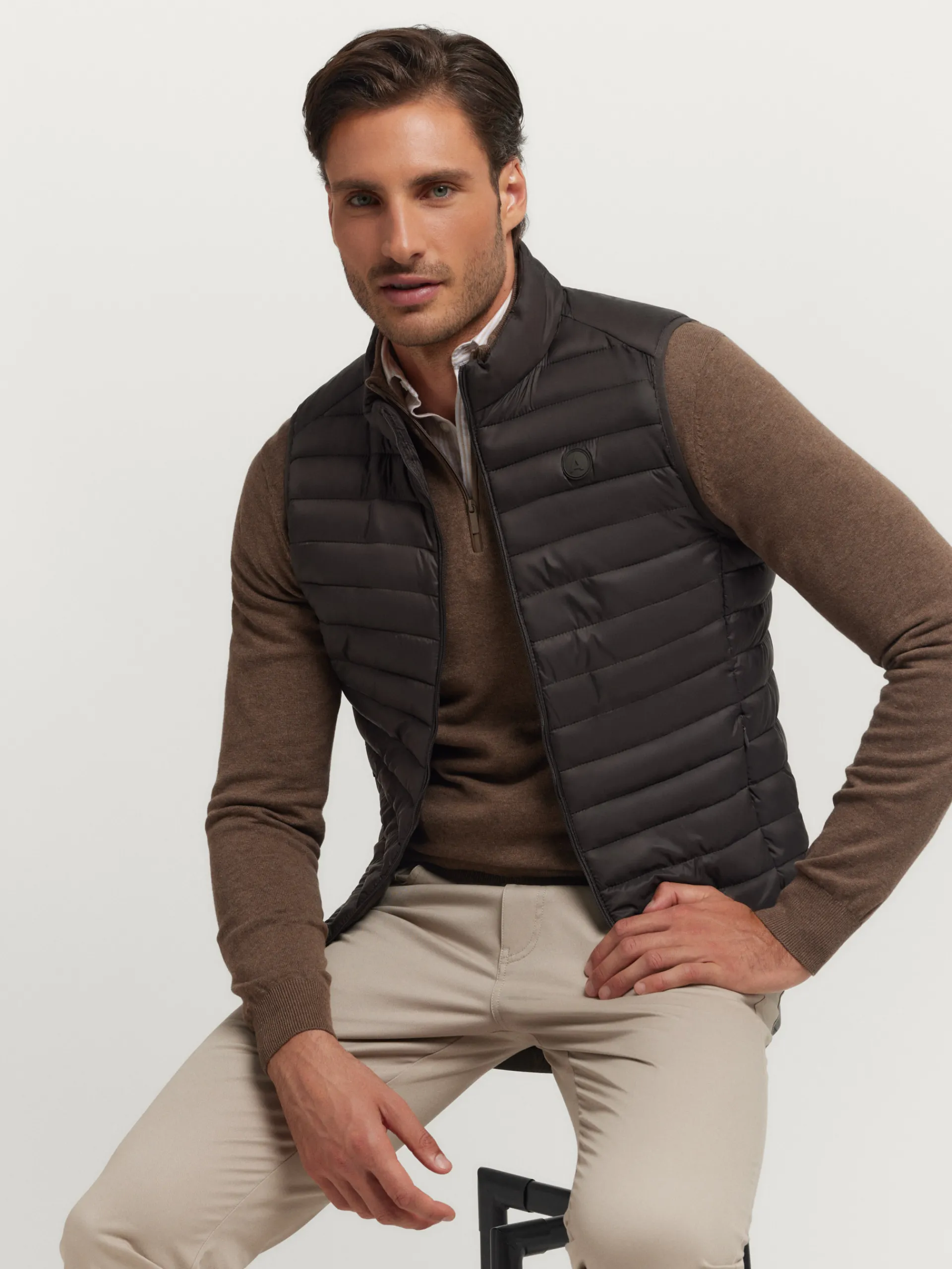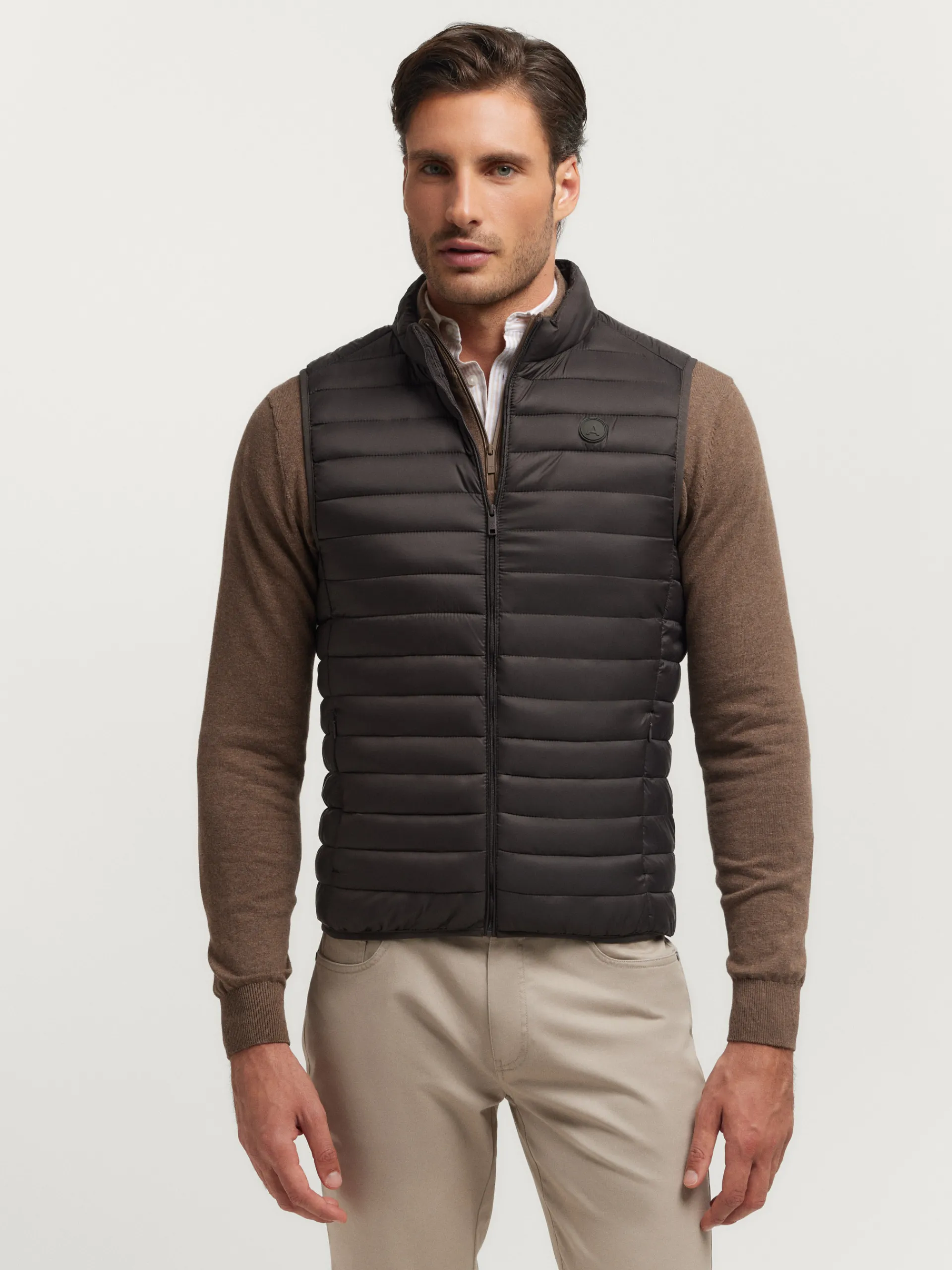 Chaleco acolchado con cuello subido y cierre central mediante cremallera, dos bolsillos a la altura de la cintura y logo…