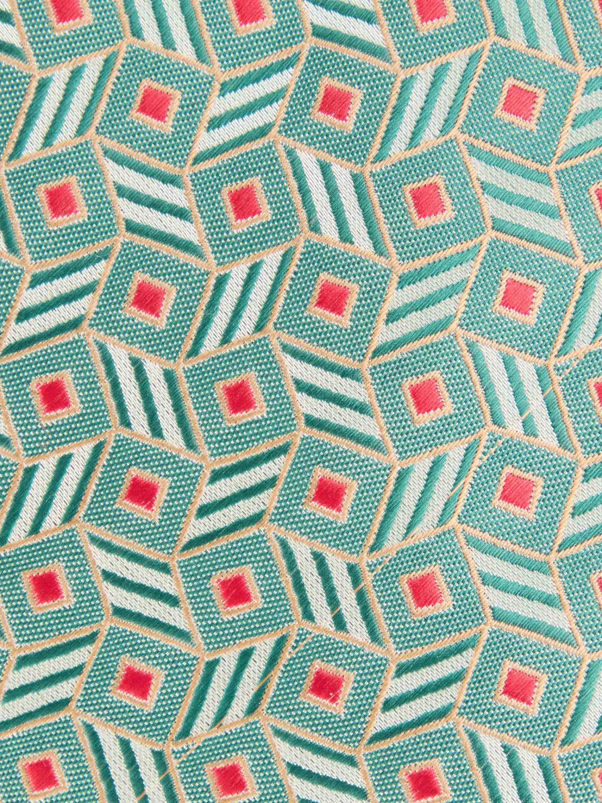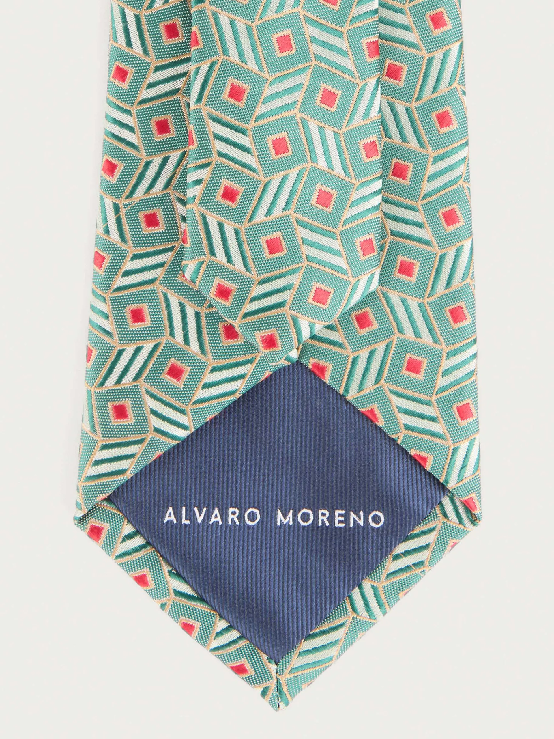 Corbata estilo jacquard con diseño estampado a contraste confeccionada en 100% poliéster. Cuenta con el logo de la marca grabado en el interior.