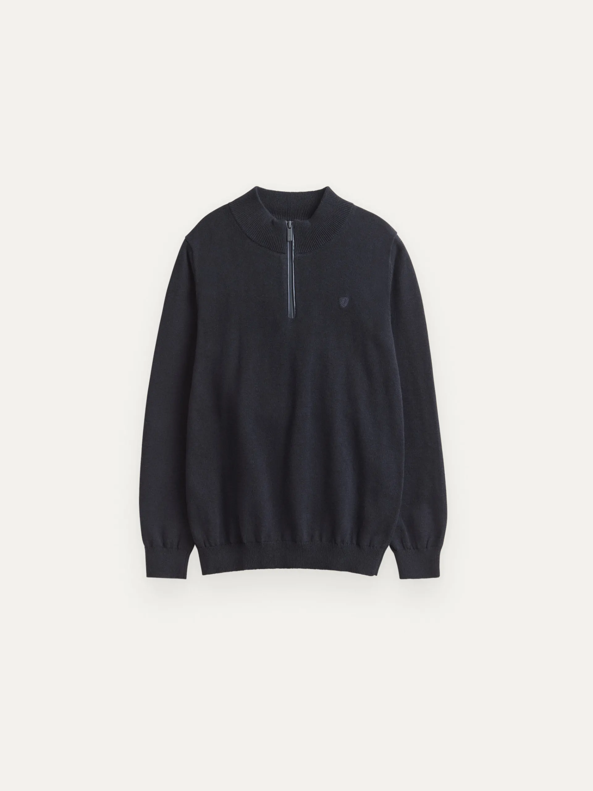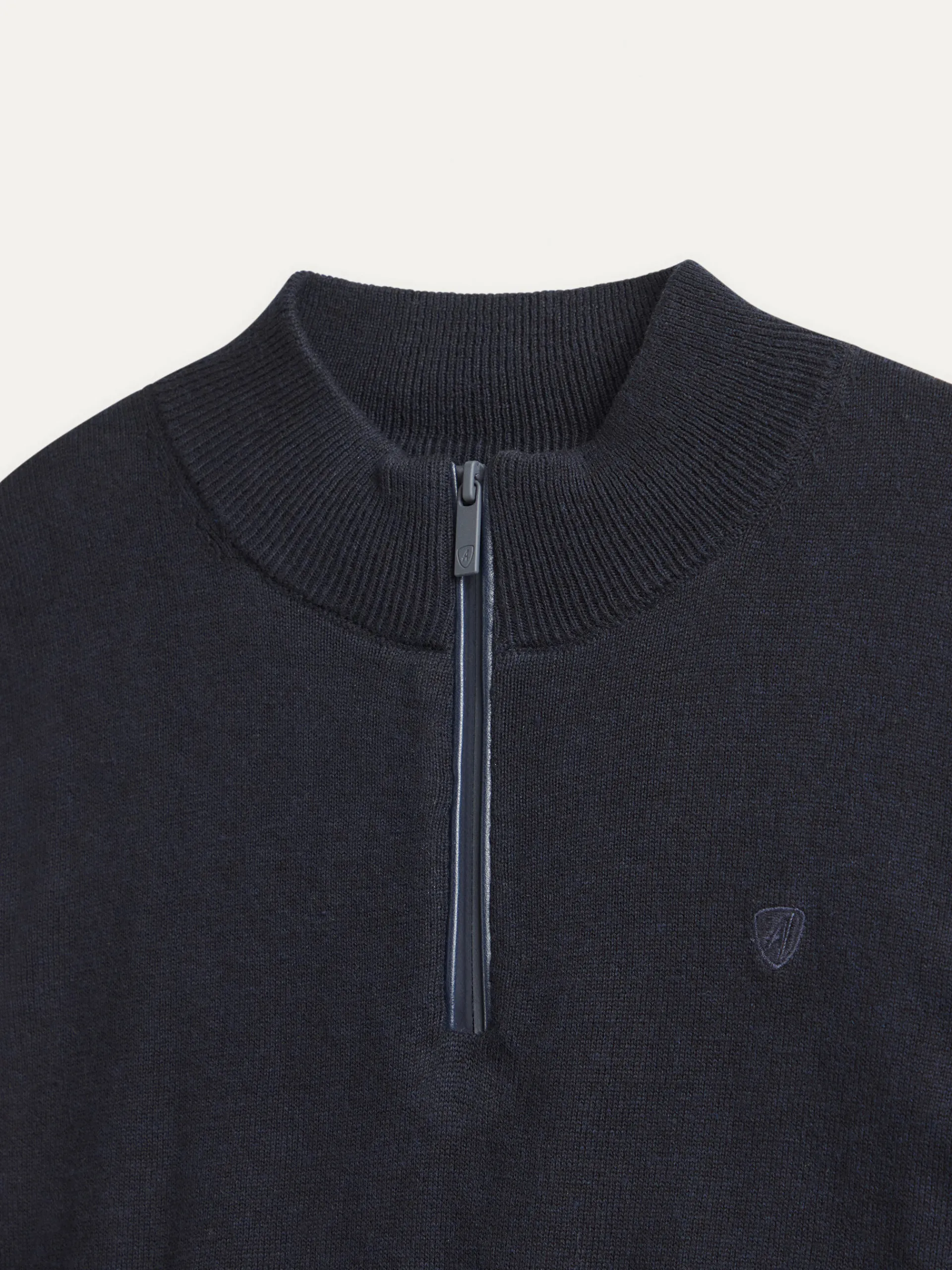 Jersey de corte regular confeccionado en algodón. Cuello alto con medio cierre de cremallera. Logo bordado en el frontal al tono. Cuello, puños y bajo en acabado elástico.