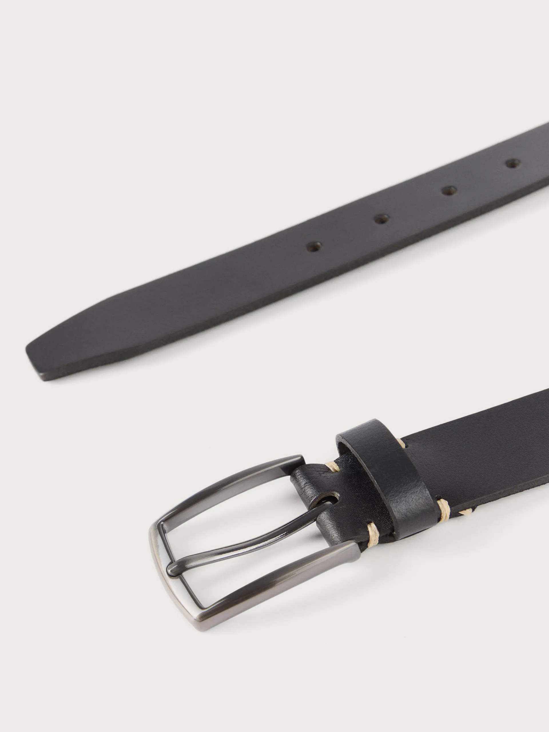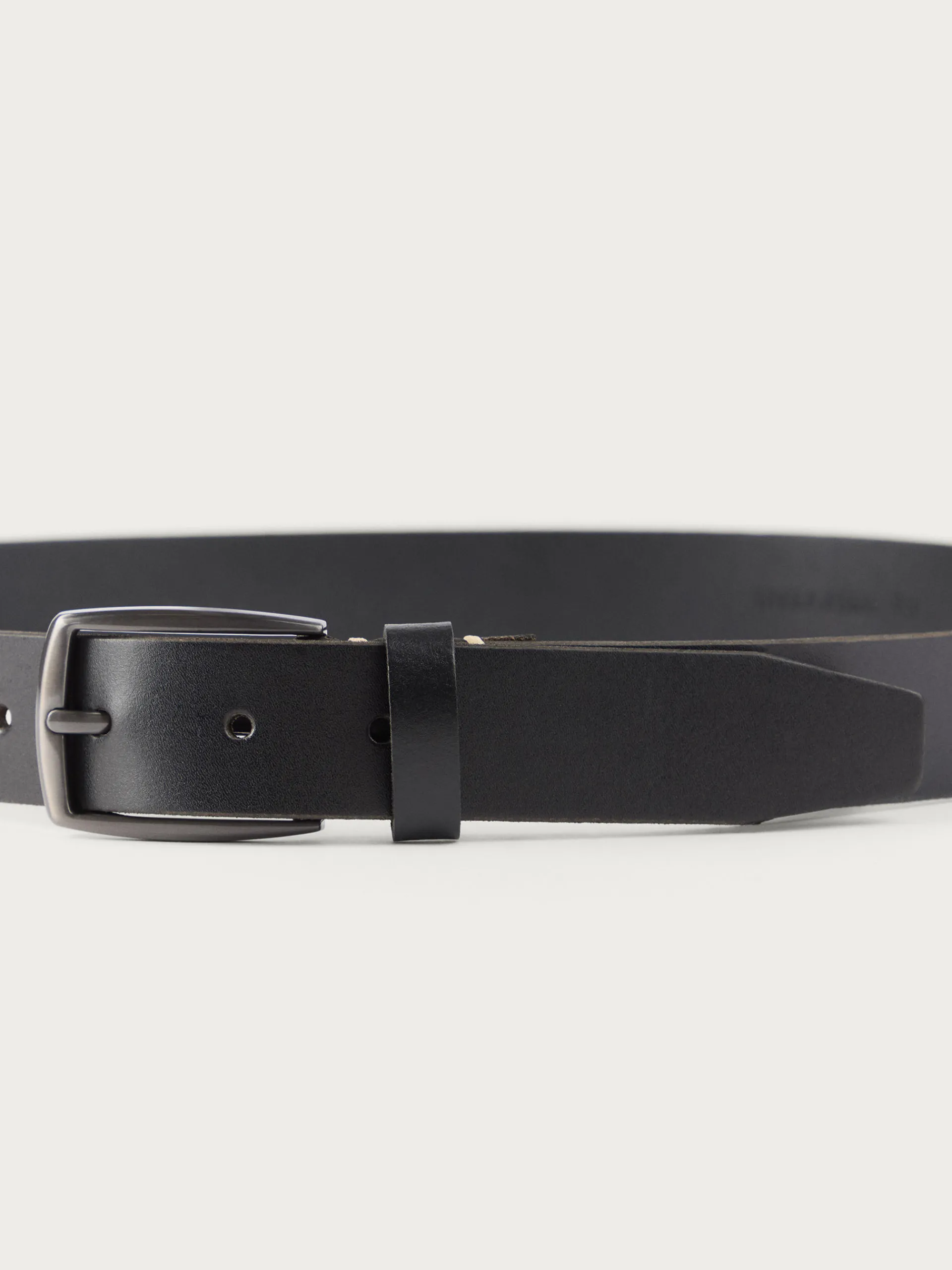 Cinturón de vestir confeccionado en piel con cierre central mediante hebilla metálica y pasador al tono.
