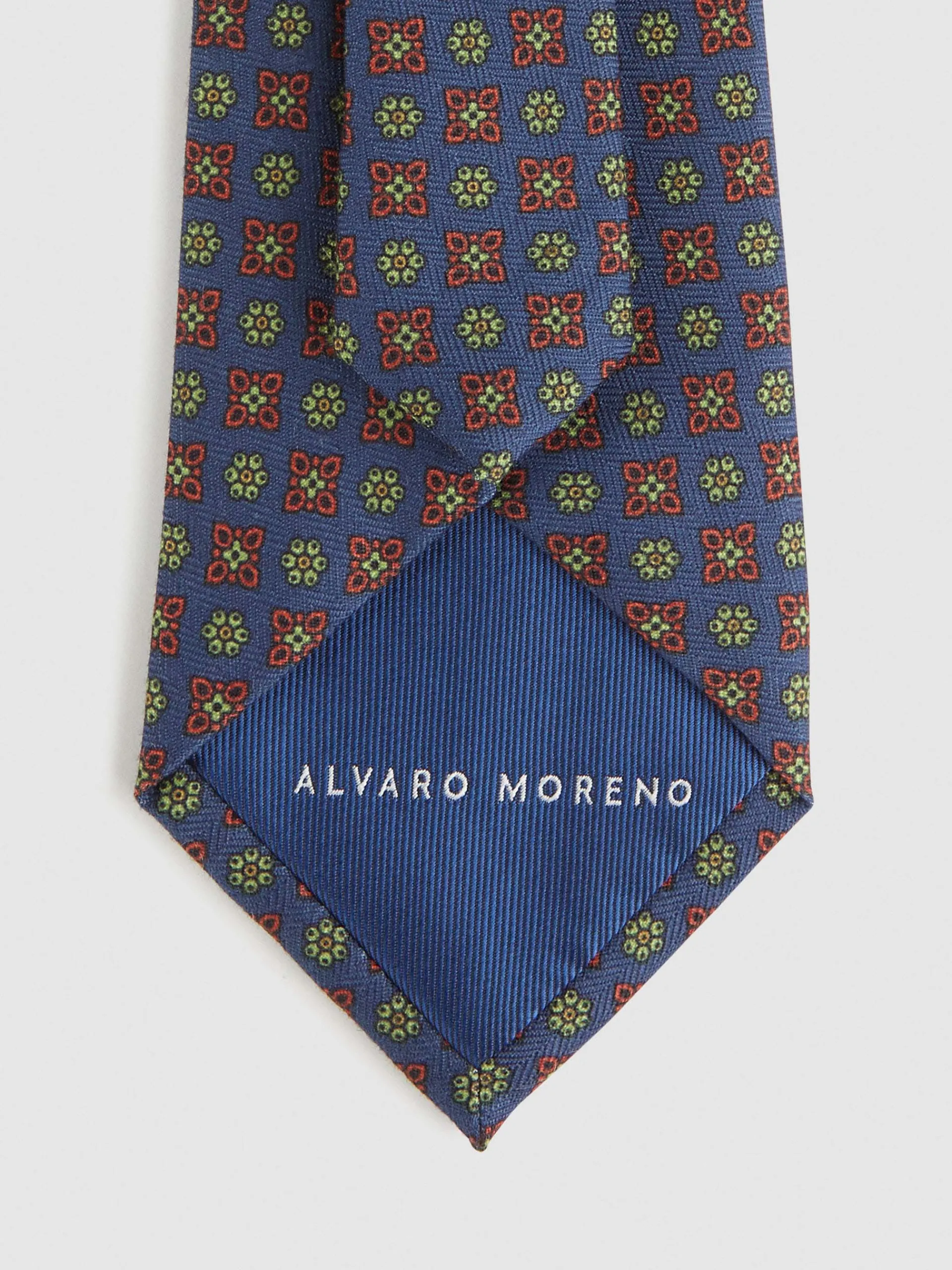 Corbata con diseño estampado personalizado confeccionada en 100% poliéster. Cuenta con el logo de la marca grabado en el interior.