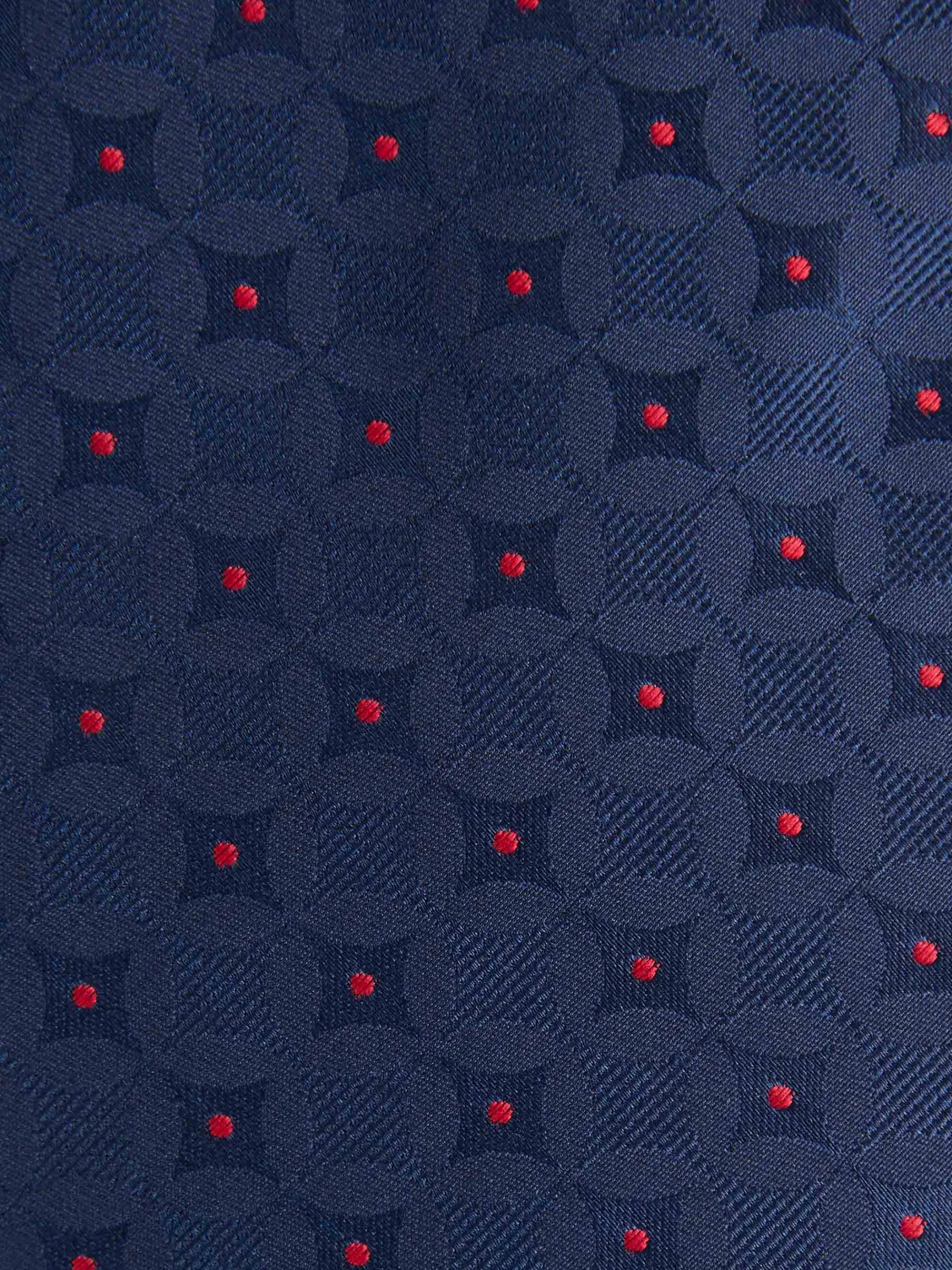 Corbata estilo jacquard con diseño estampado a contraste confeccionada en 100% poliéster. Cuenta con el logo de la marca grabado en el interior.