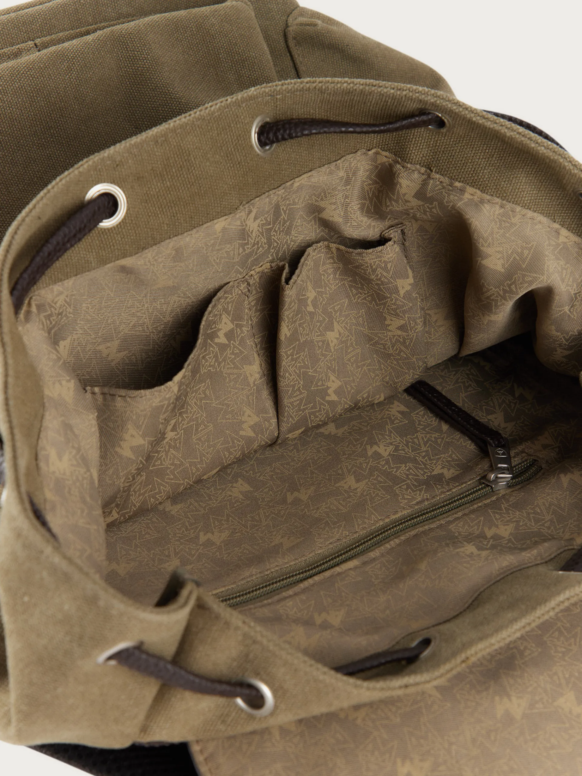 Mochila estilo explorer con dos asas de hombro ajustables, gran compartimento principal con cierre mediante solapa y diferentes bolsillos en su interior. Cordón ajustable. Bolsillo en el frontal y en ambos laterales con cierre mediante cremallera. Forrado en su interior.